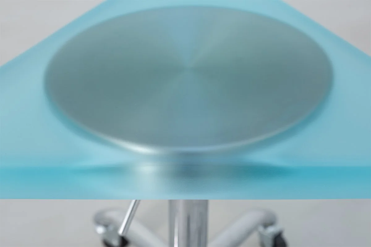 Dip2 expands the top of a circular studio stool into an amorphous triangular form using resin. The seat, often unnoticed while in use, is blurred within the resin to represent the blind spots of memory, while the newly added triangular top suggests free formal possibilities. Breaking the mold of familiar furniture, this added volume combines user experience with object form to explore the extent to which everyday tools can be expanded.